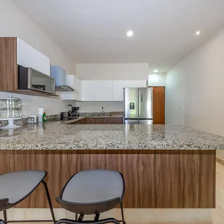 Tulum şehrinde Pirámide del Pensamiento Positivo'dan 25 dakikalık yürüme mesafesinde bulunan Spacious 2Br Condo With Pool And Private Balcony, donanımlı mini mutfak ile konaklamayı sunar.